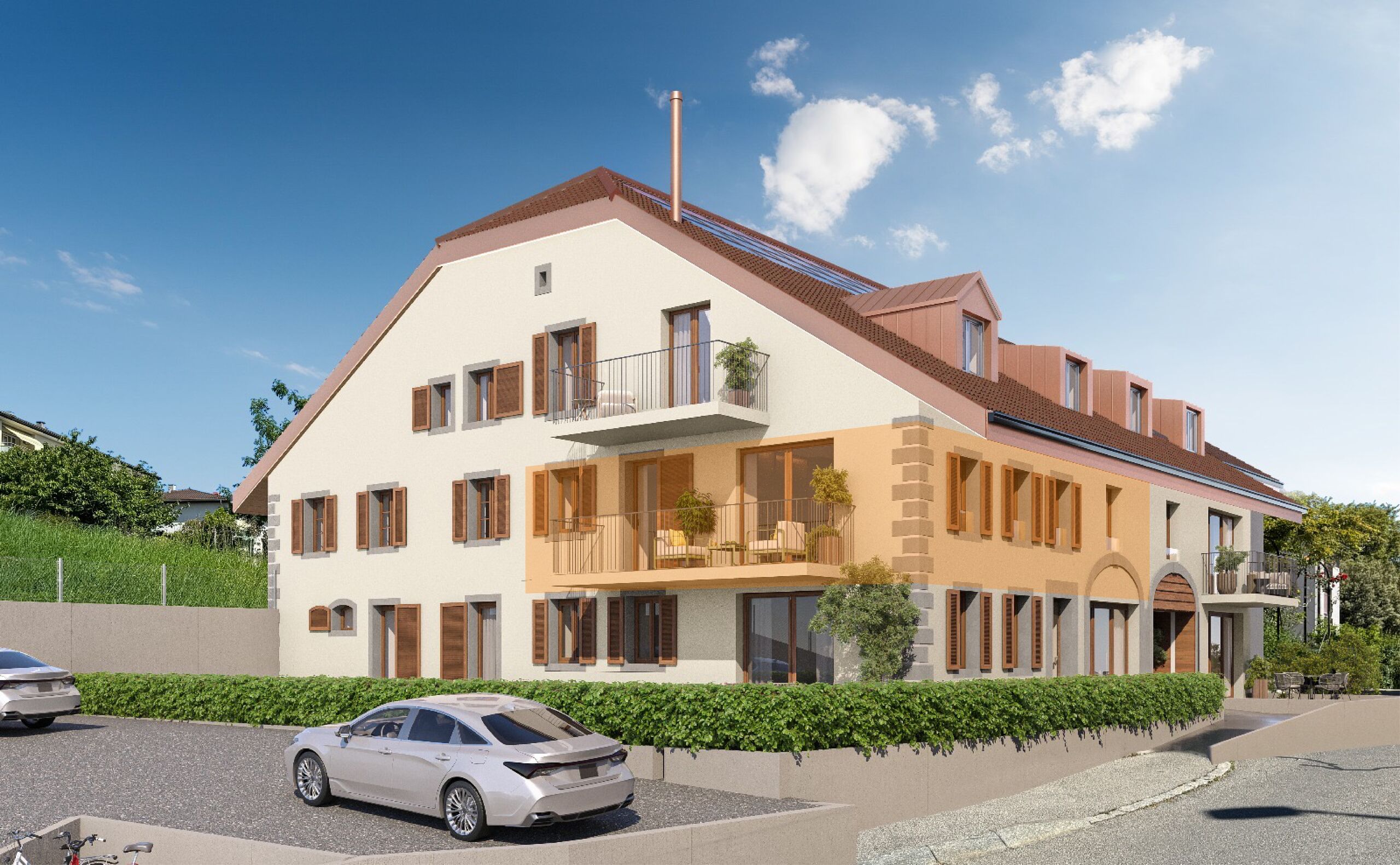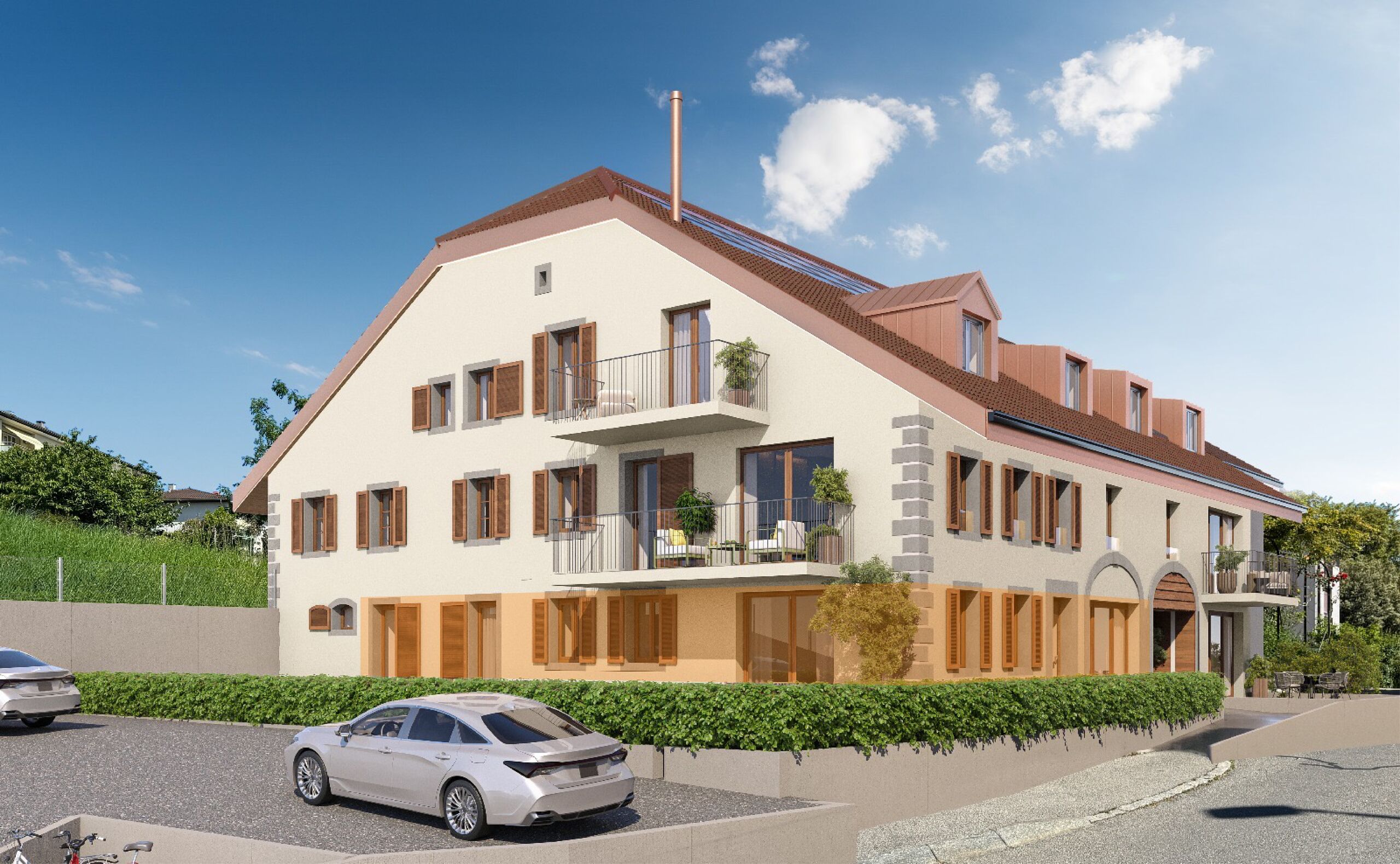 Interior parking spaces are available for CHF 25,000 each, in addition to the selling price.